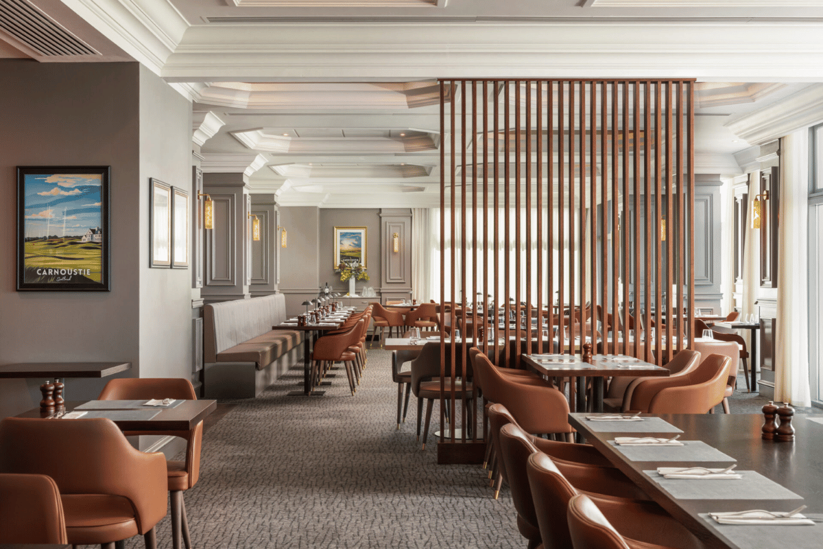 Du bor på det eleganta Carnoustie Golf Hotel, som ligger precis vid banan och erbjuder lyxiga faciliteter, fantastisk utsikt över havet och den perfekta blandningen av komfort och skotsk charm. Med tillgång till både spa, restaurang och bar är hotellet den ideala basen för en komplett golfupplevelse.