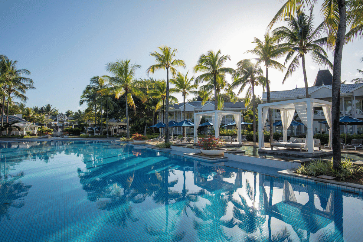 Le Telfair är byggt i kolonialstil och ligger på en 2 500 hektar stor egendom med direkt tillgång till en fantastisk strand. Resorten bjuder in till avkoppling och njutning.