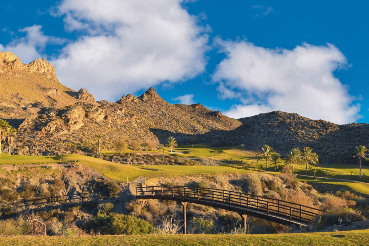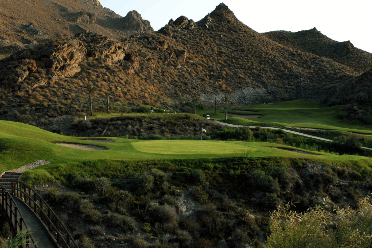 Desert Springs Golf Course, som ligger nära Valle del Este i Almería-regionen, är en prisbelönt 18-hålsbana designad i autentisk ökenstil. Banan är designad av den berömda banarkitekten Peter McEvoy och är känd för sin unika Arizona-inspirerade layout med välskötta fairways, strategiskt placerade bunkrar och naturliga ökenlandskap. Den erbjuder en utmanande men rättvis spelupplevelse för golfare på alla nivåer, samtidigt som den erbjuder en spektakulär utsikt över det omgivande området.