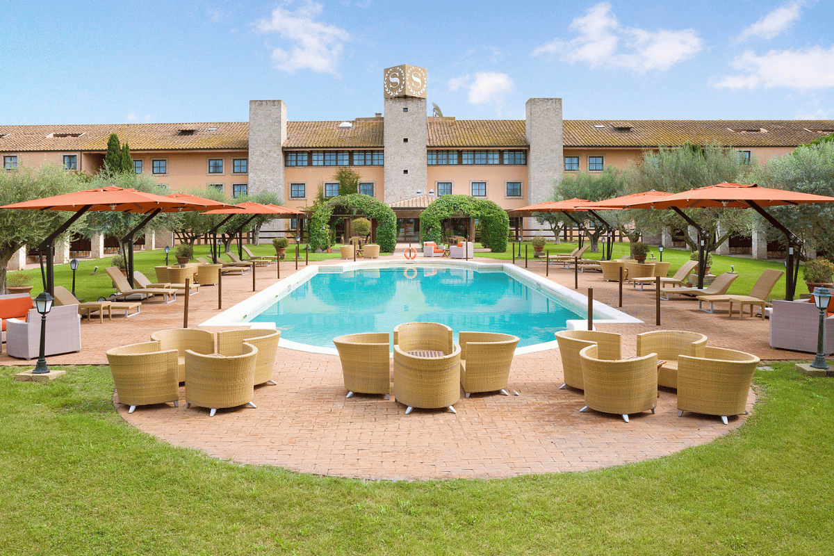 Sheraton Parco de' Medici är ett elegant hotell beläget i en grön oas nära Roms historiska centrum. Hotellet ligger nära Parco de' Medici Golf och erbjuder dig som gäst en unik kombination av komfort, moderna faciliteter och natursköna omgivningar. Med sitt läge nära både Fiumicino flygplats och stadens viktigaste sevärdheter är hotellet perfekt för en kort paus från vardagen. Sheraton Parco de' Medici erbjuder rymliga rum, flera restauranger, utomhuspooler och flexibla mötesfaciliteter, vilket gör det till ett populärt val för gäster som söker en avkopplande bas i Rom.