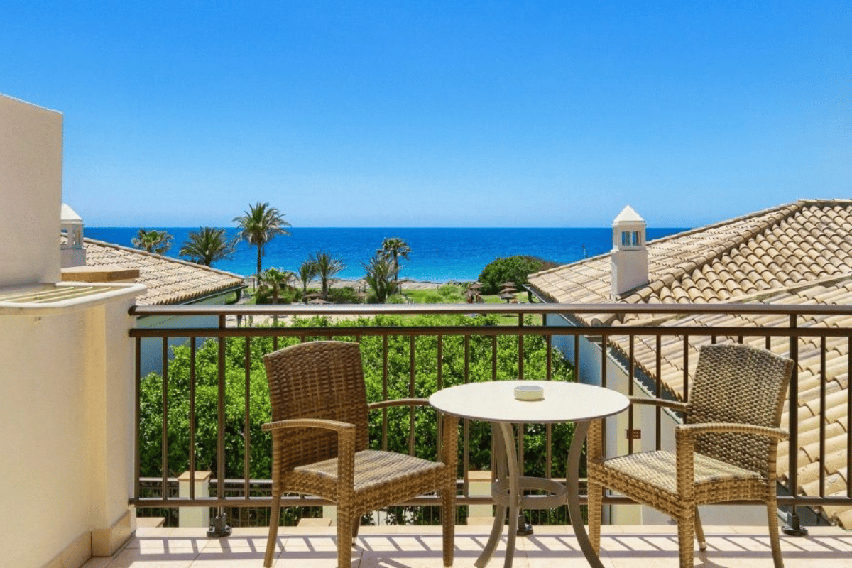 Hotellets 329 rum är utspridda i mindre byggnader i en stor, välskött trädgård. De största rummen rymmer upp till 4 personer, och du har möjlighet att boka ett rum med havsutsikt.