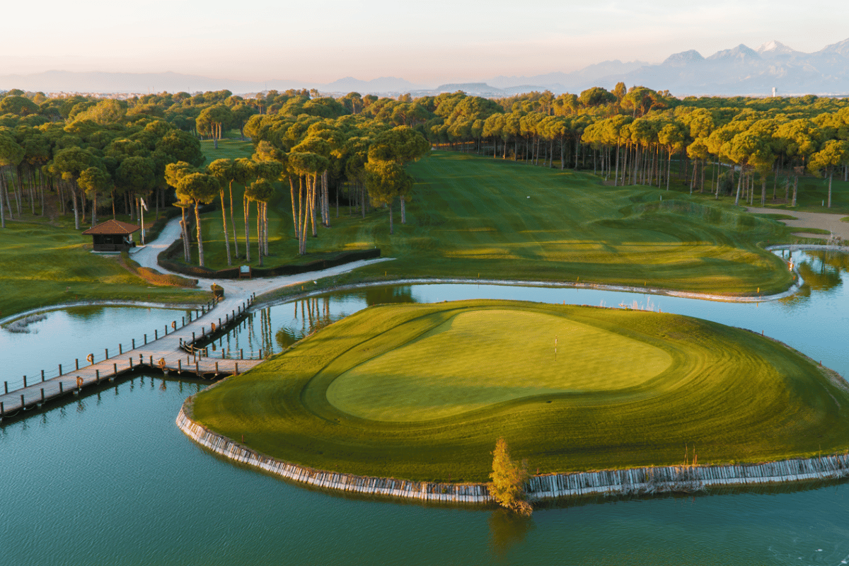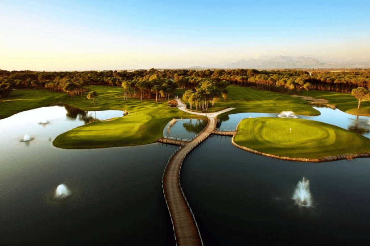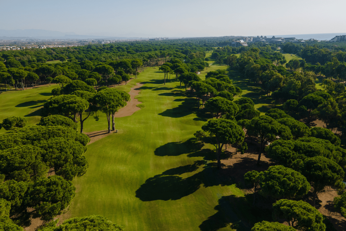 Pines-banan erbjuder 6300 meter utmärkt golf från de bakre tee. Välskötta fairways slingrar sig genom tätt skogsklädda omgivningar, medan många perfekt utformade ö-greener väntar på ditt inspel. Banan är utan tvekan den svåraste av de två på resorten, men en utmaning för golfare med lågt handicap och är definitivt en potentiell kandidat för ett framtida DP World Tour-evenemang i Belek.